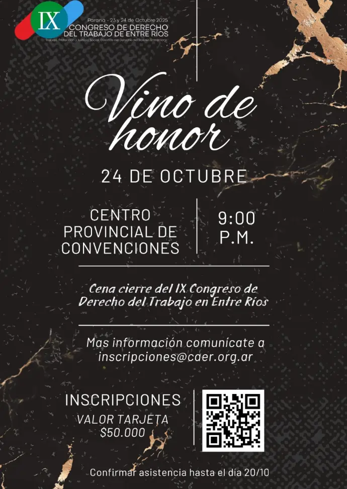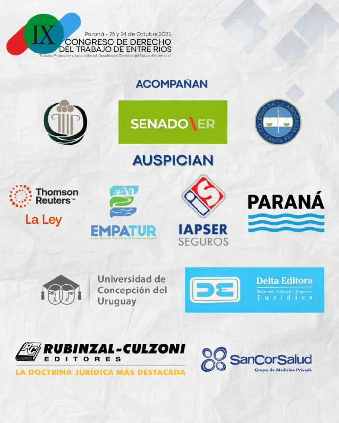 Bajo el lema “Trabajo, Protección y Justicia Social: Desafíos del Derecho Laboral Entrerriano”, este congreso reunirá a referentes del ámbito jurídico y académico para reflexionar, debatir y actualizar conocimientos sobre los retos actuales del Derecho del Trabajo en nuestra provincia.